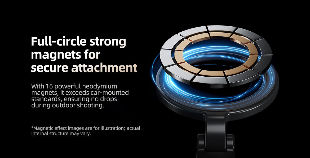 You can rest assured that we use high-quality neodymium magnets, which provide sufficient magnetic force to firmly attach the phone, and are designed with a safety mechanism to prevent accidental falling off.
