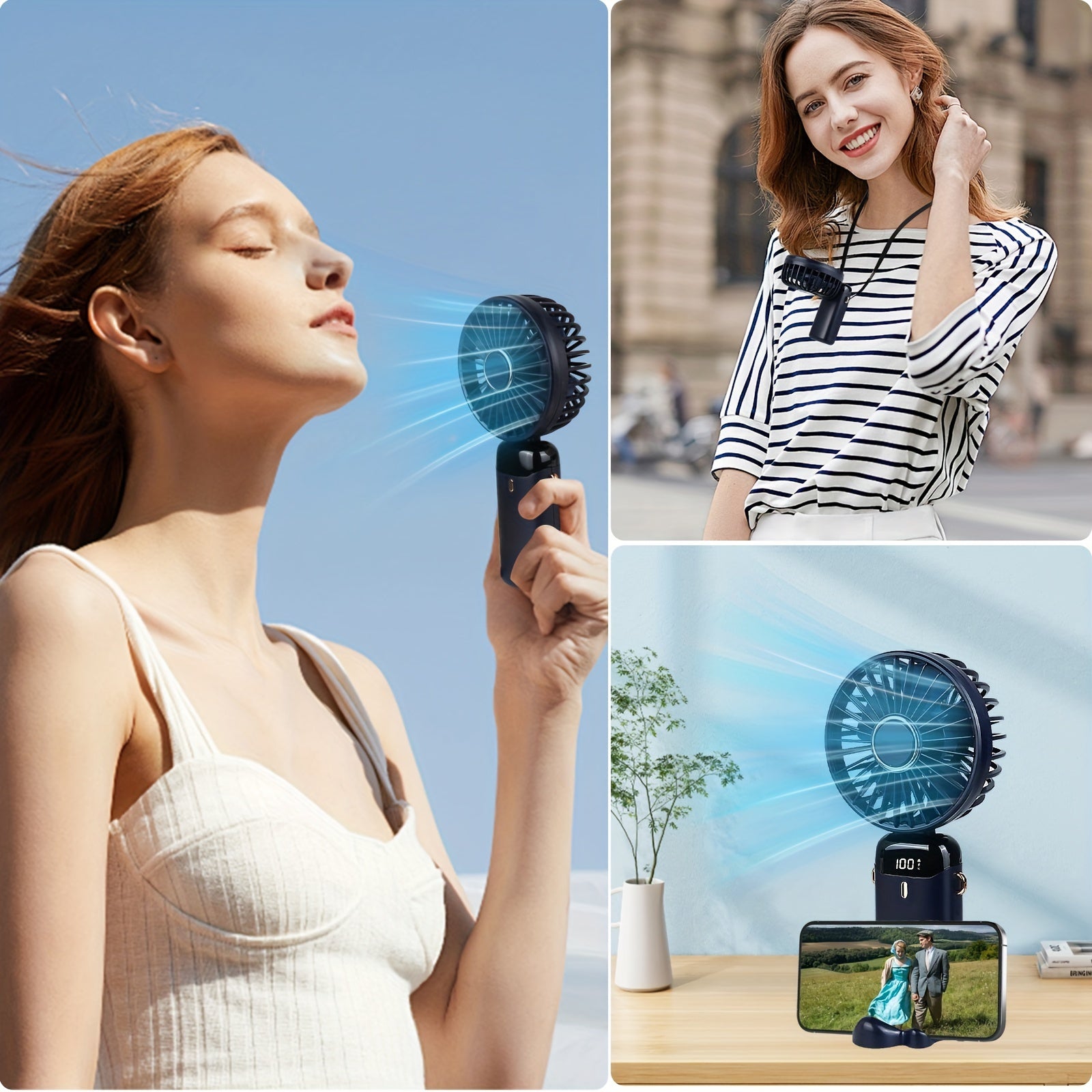 The USB rechargeable handheld fan adopts a low-noise design, and the sound is small when working, which will not cause interference.